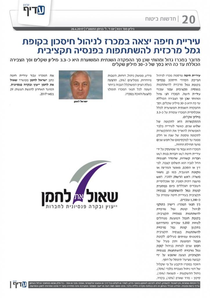 עיריית חיפה מכרז לבחירת קופת גמל לחסכון עבור פנסיה תקציבית